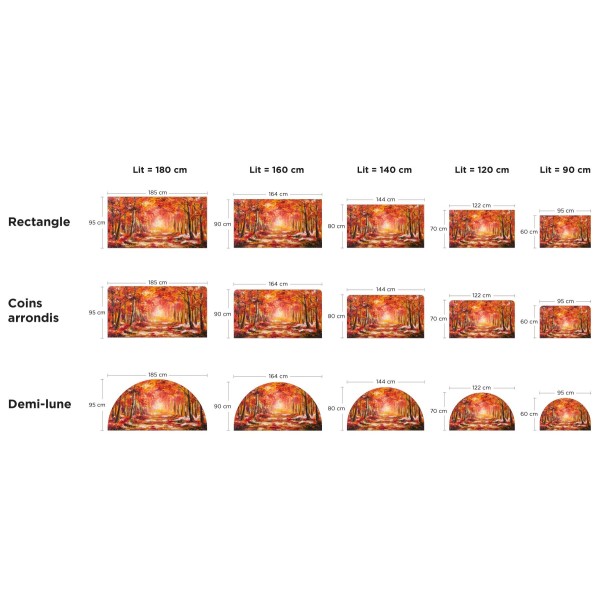 La coupe des têtes de lits pouvant varier de 1 à 2 millimètres, nous ne pouvons donc garantir une coupe au millimètre. Aussi, nous vous conseillons de retirer 3 millimètres à chaque mesure pour être certain que votre produit trouvera sa place dans votre pièce.